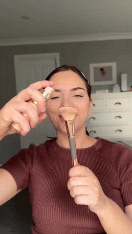 Apply a small amount to clean, moisturized skin using your fingertips, a brush, or a damp sponge.